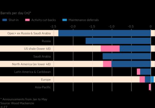 美国产量下降的部分原因是油井的关闭,部分原因是资本支出减少。总体来说,这使得美国页岩油行业的核心地带每天减少了120万桶的产量。